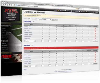 Redzone has a very flexible statistics engine which is at your disposal. When you enter in a game's statistics, everything is automatically updated! Do you have a wacky statistic that nobody else tracks? Redzone also allows you to define your own statistics, so you can be sure that you're tracking the information the way you want it.